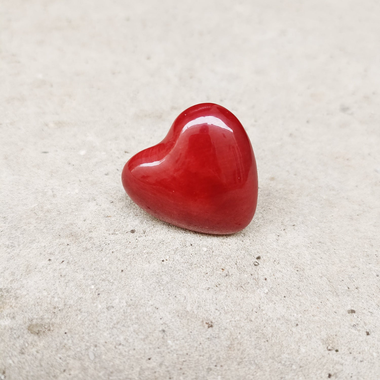 Anello Cuore Rosso scuro in ceramica, realizzato interamente a mano.