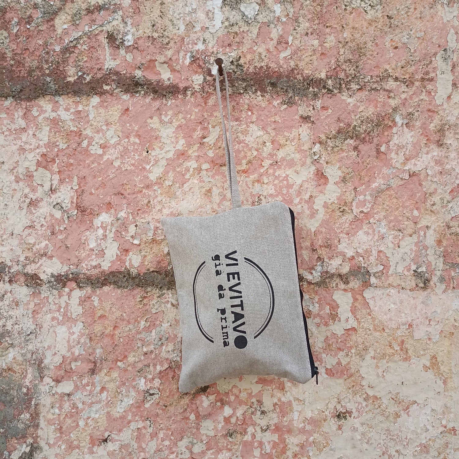 Pochette in cotone naturale, cucite e stampate a mano con tecnica stencil