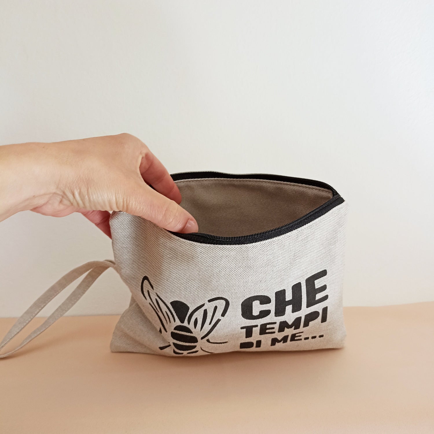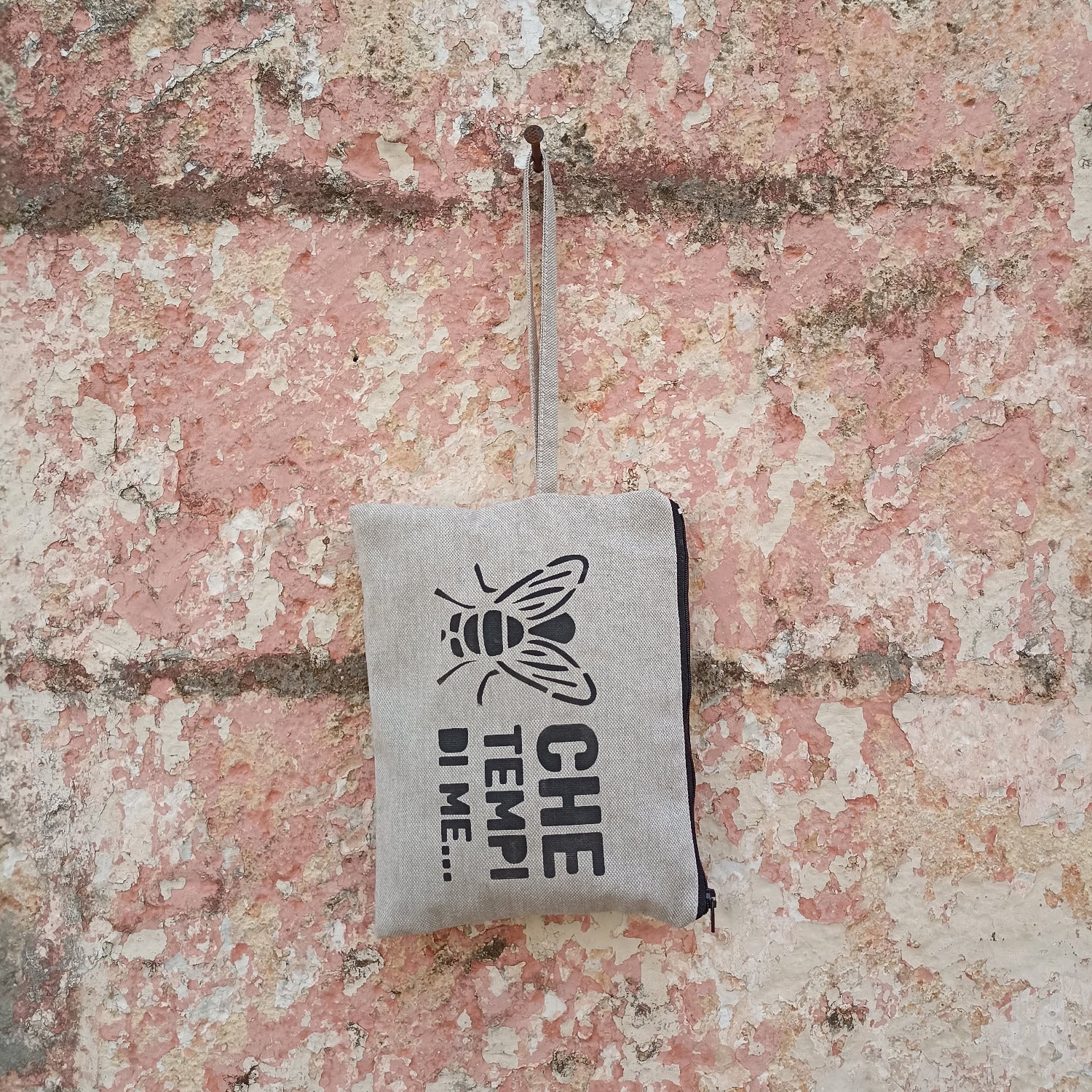 Pochette in cotone naturale, cucite e stampate a mano con tecnica stencil