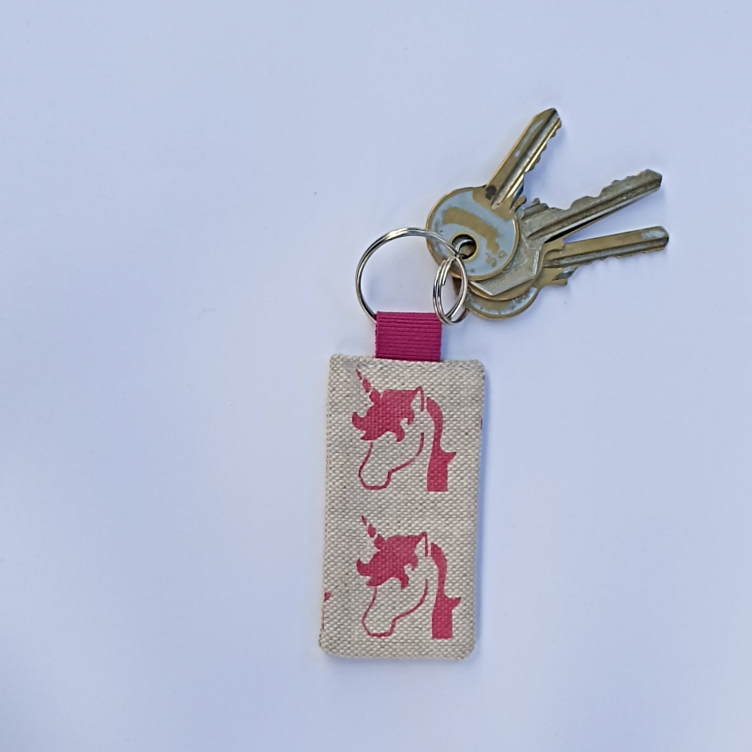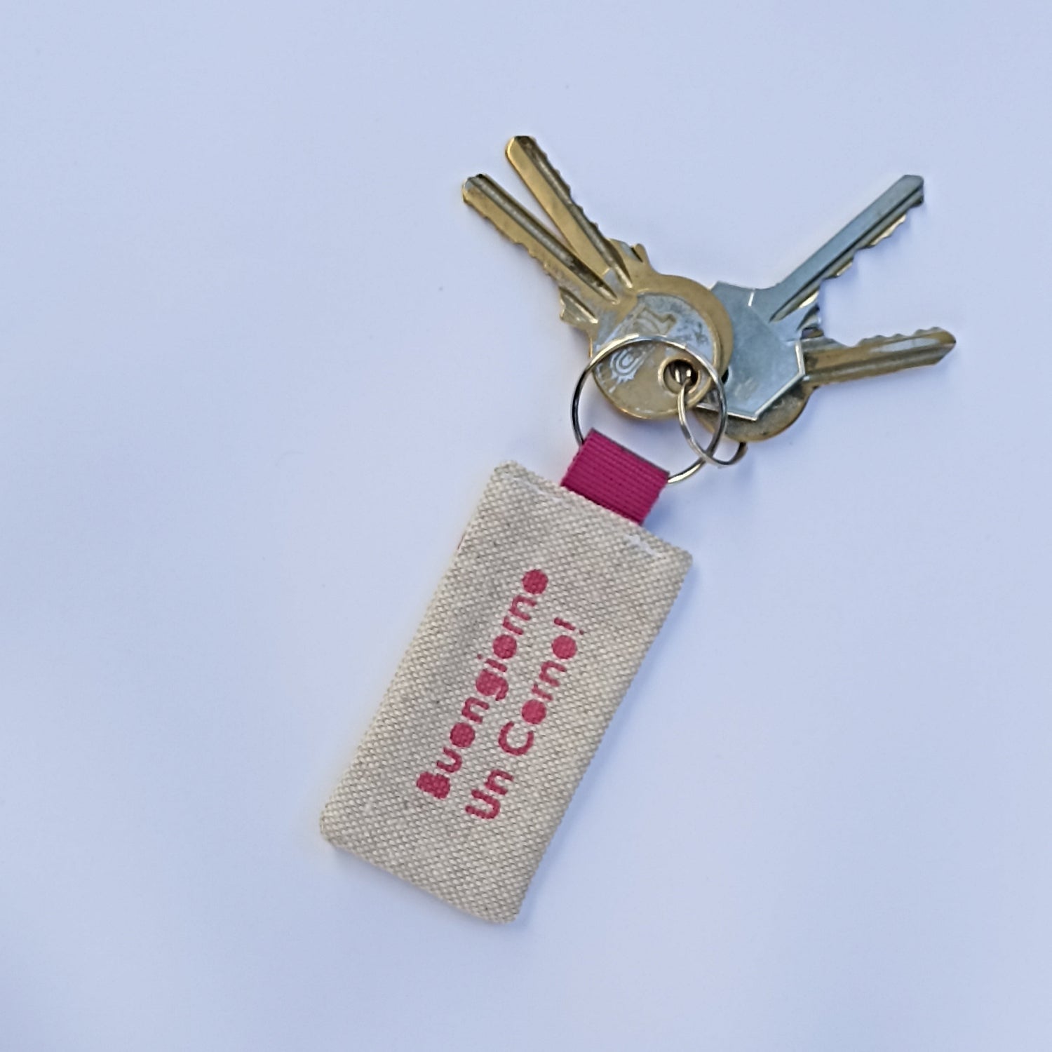 Portachiavi BUONGIORNO UN CORNO in cotone naturale, stampato a mano con tecnica stencil