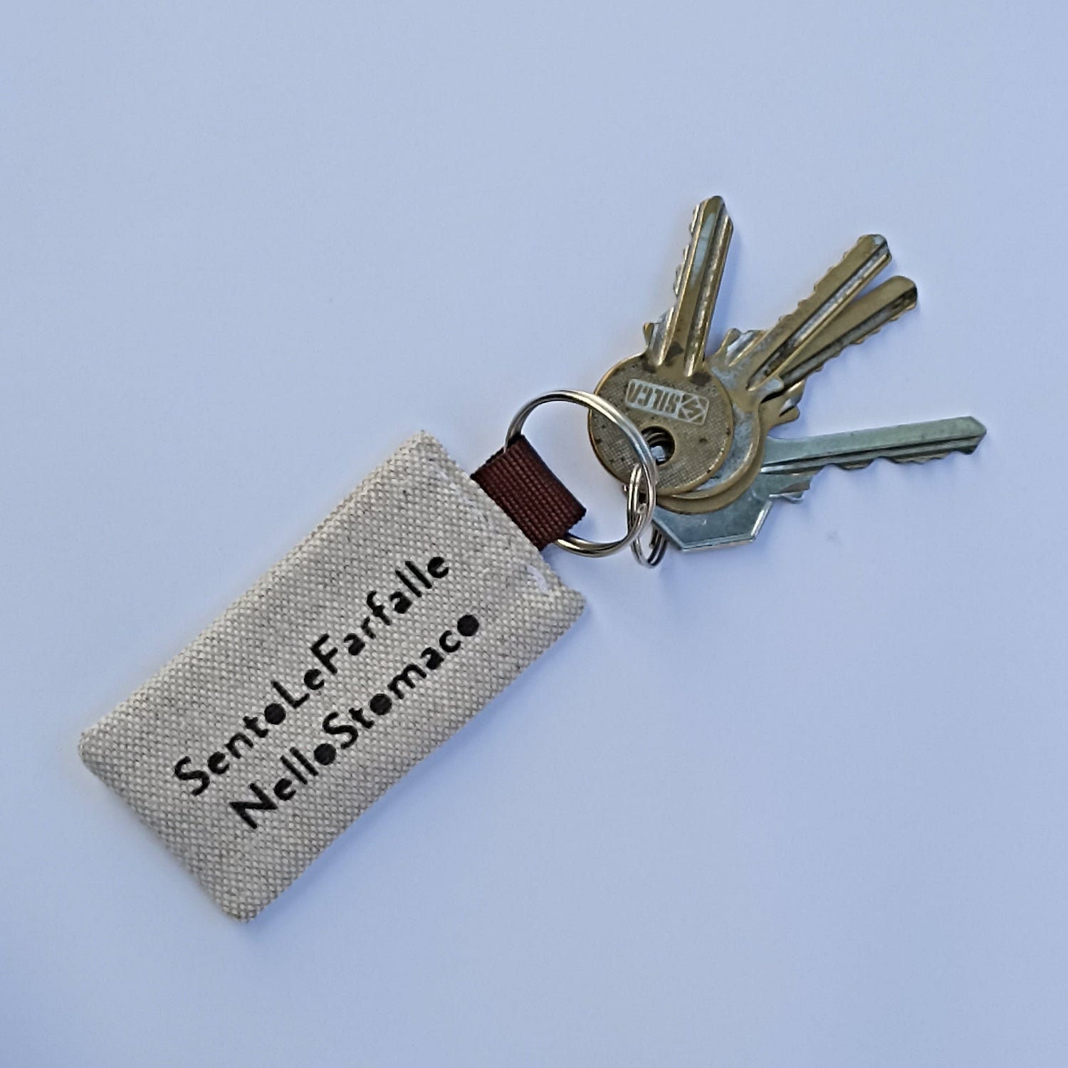 Portachiavi SENTO LE FARFALLE NELLO STOMACO in cotone naturale, stampato a mano con tecnica stencil