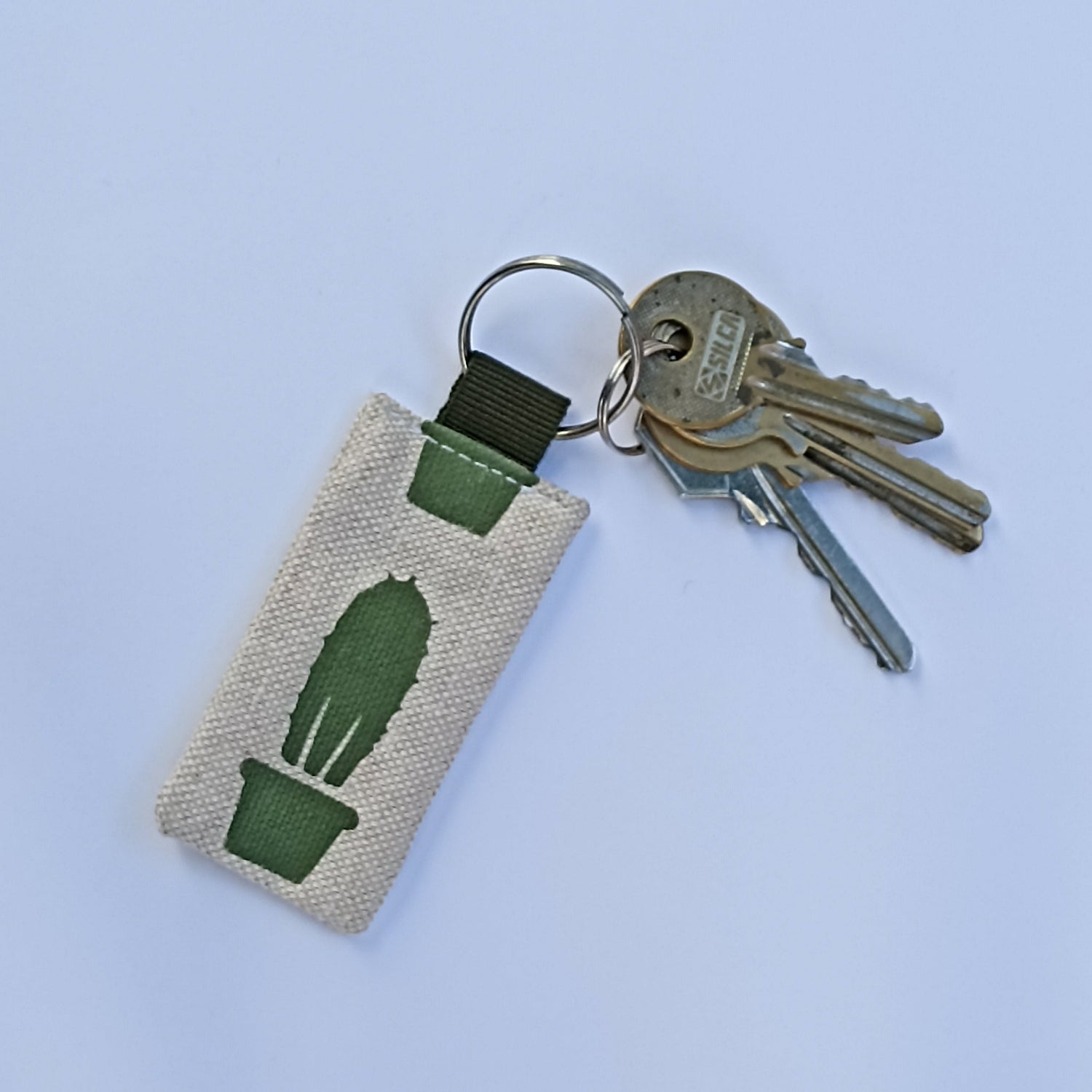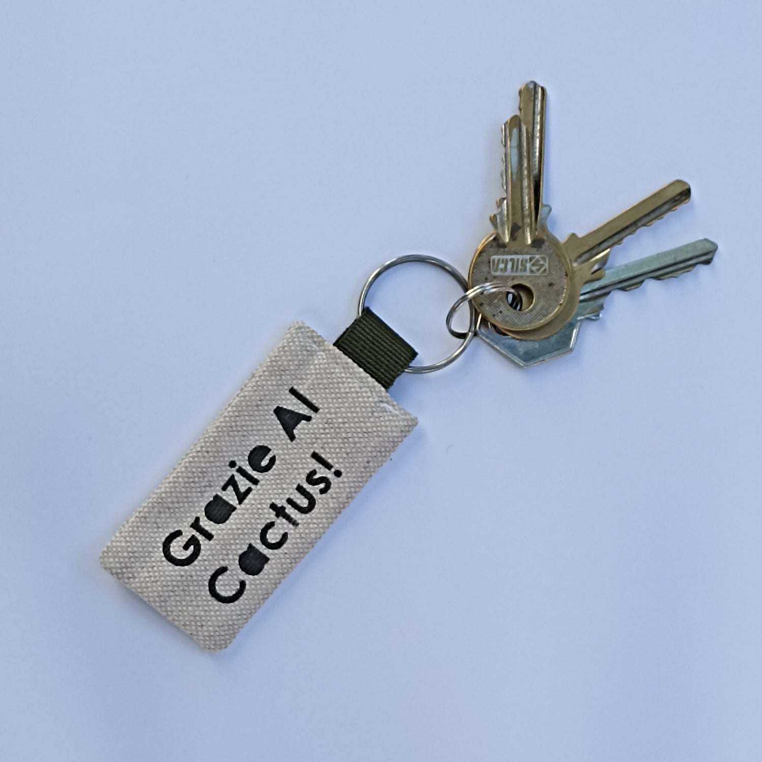Portachiavi GRAZIE AL CACTUS in cotone naturale, stampato a mano con tecnica stencil