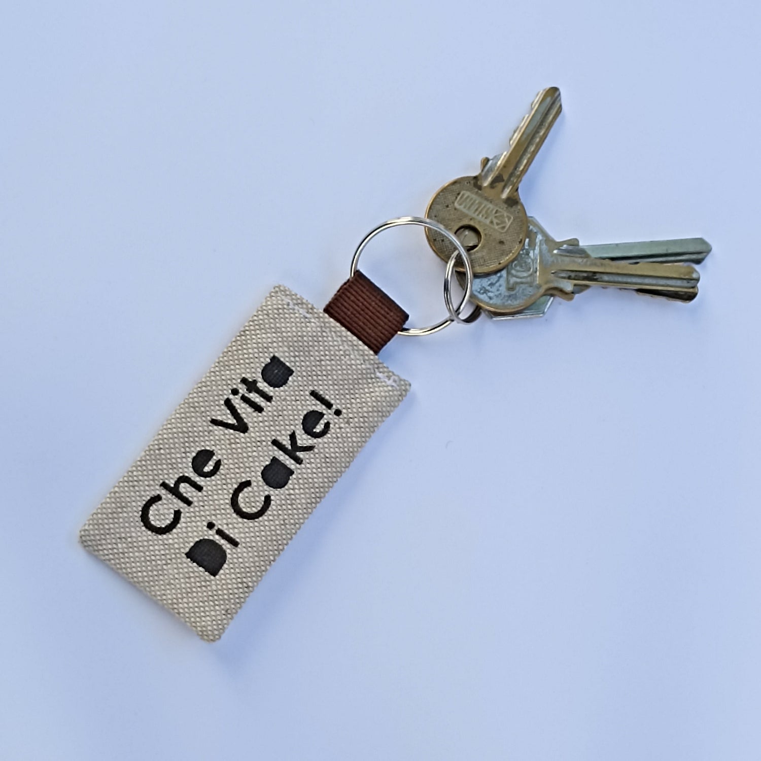 Portachiavi CHE VITA DI CAKE in cotone naturale, stampato a mano con tecnica stencil