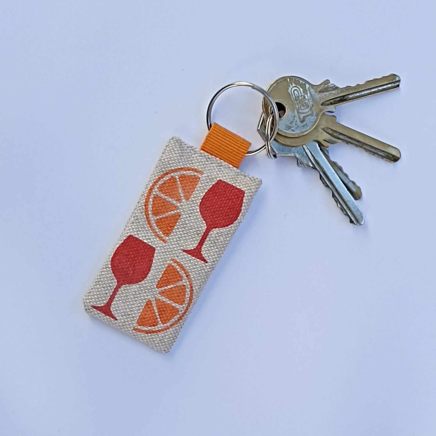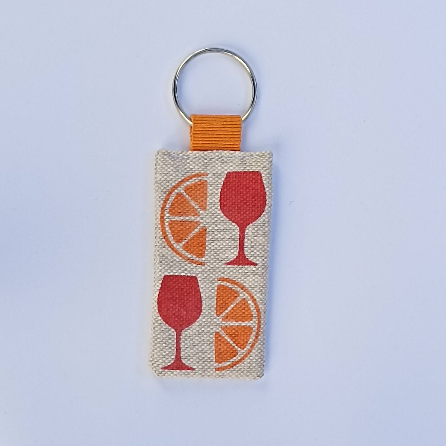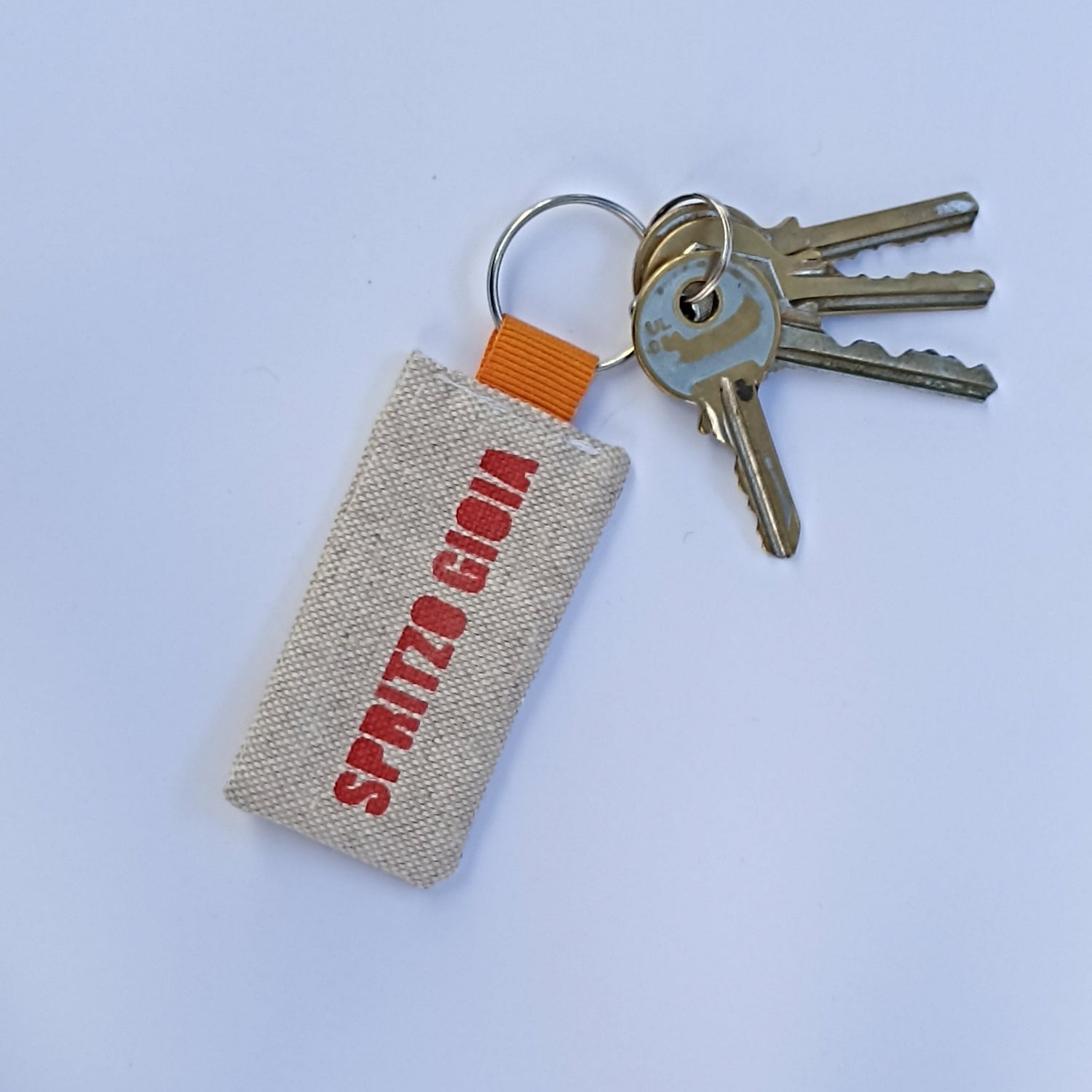 Portachiavi SPRITZO GIOIA in cotone naturale, stampato a mano con tecnica stencil