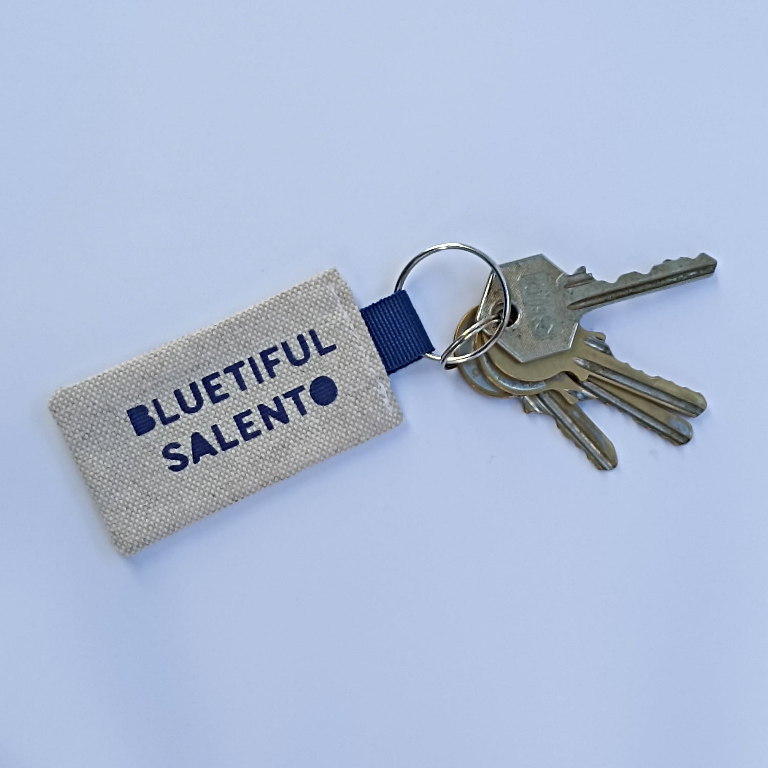 Portachiavi BLUETIFUL SALENTO in cotone naturale, stampato a mano con tecnica stencil