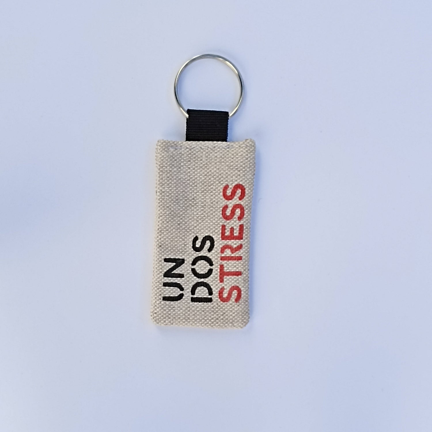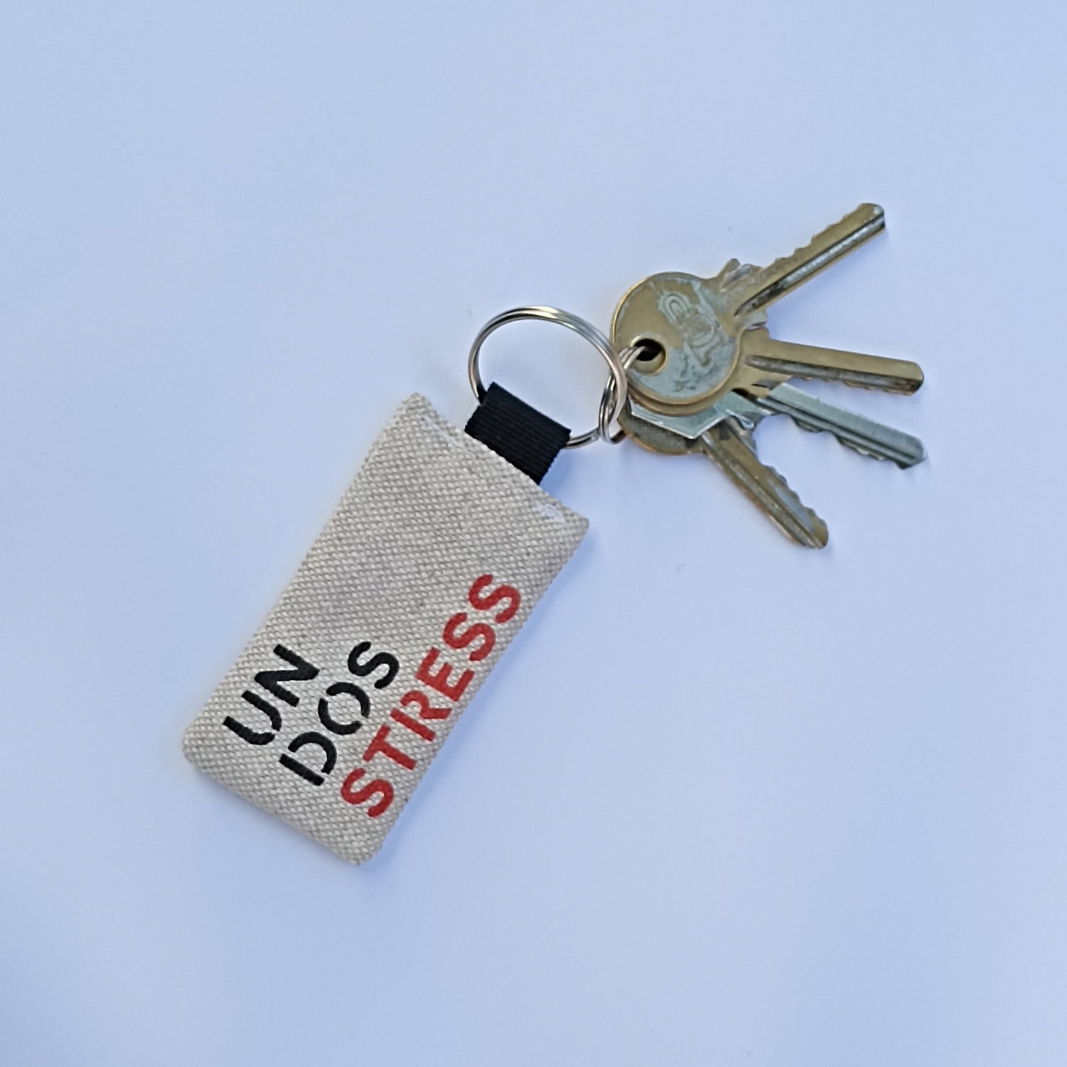 Portachiavi UN DOS STRESS in cotone naturale, stampato a mano con tecnica stencil