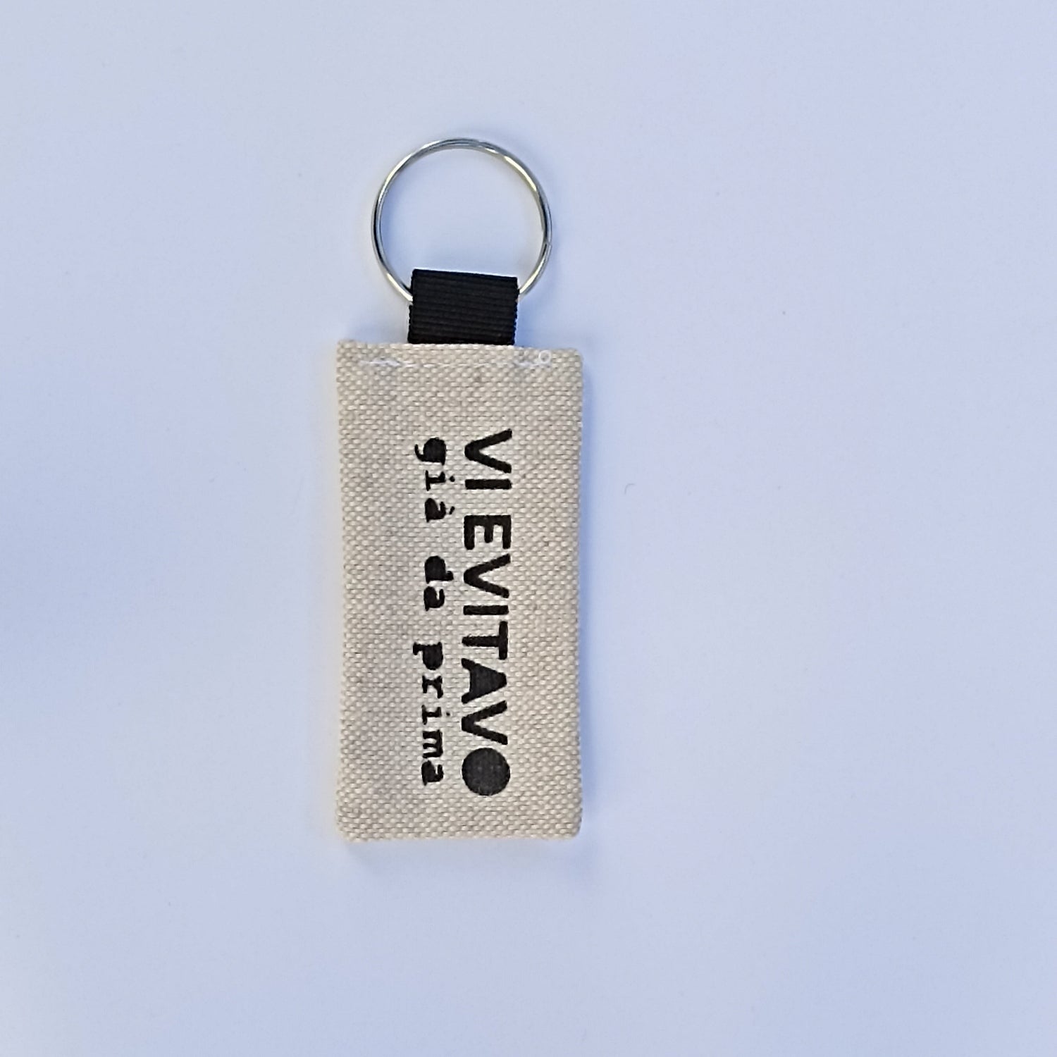 Portachiavi VI EVITAVO GIA' DA PRIMA in cotone naturale stampato a mano con tecnica stencil