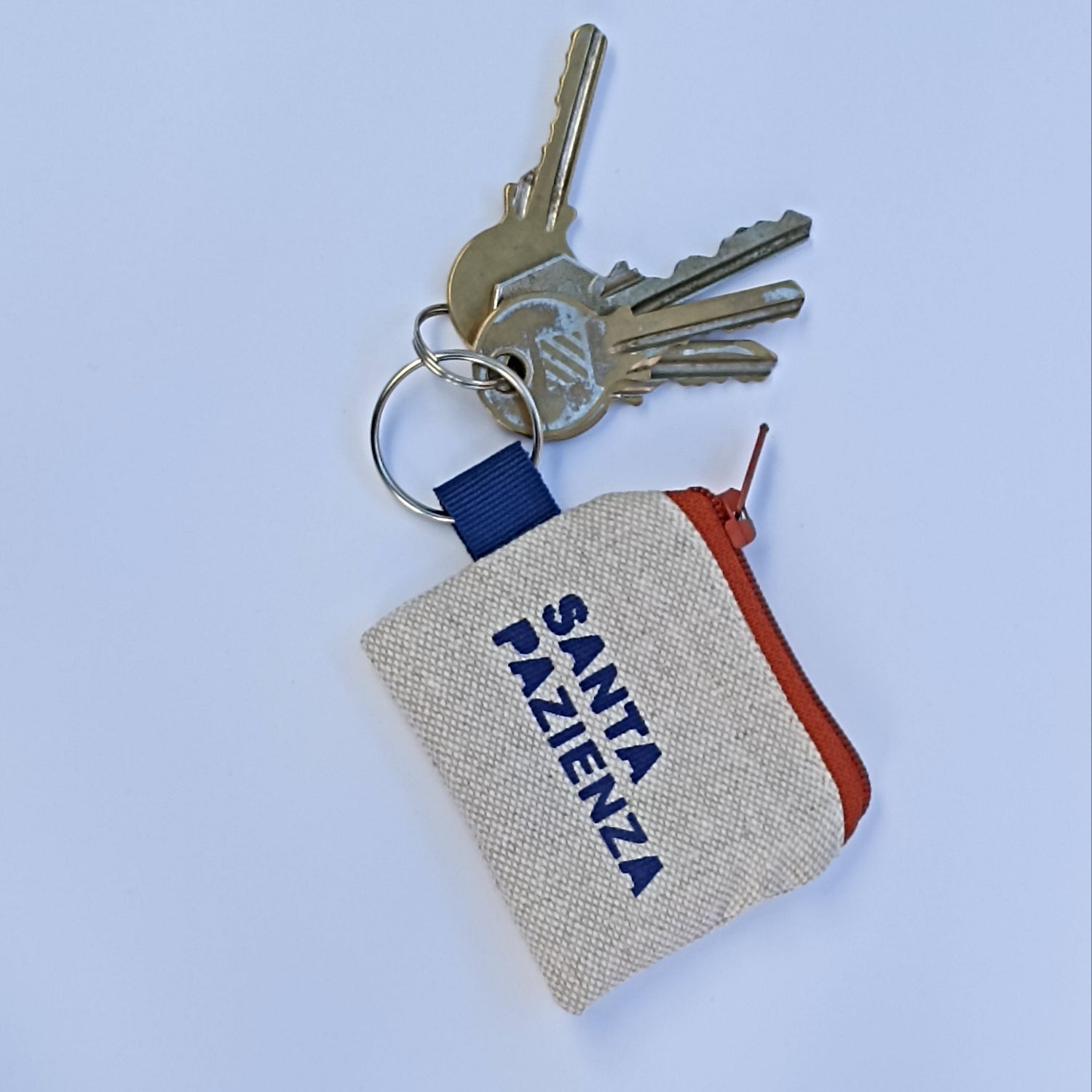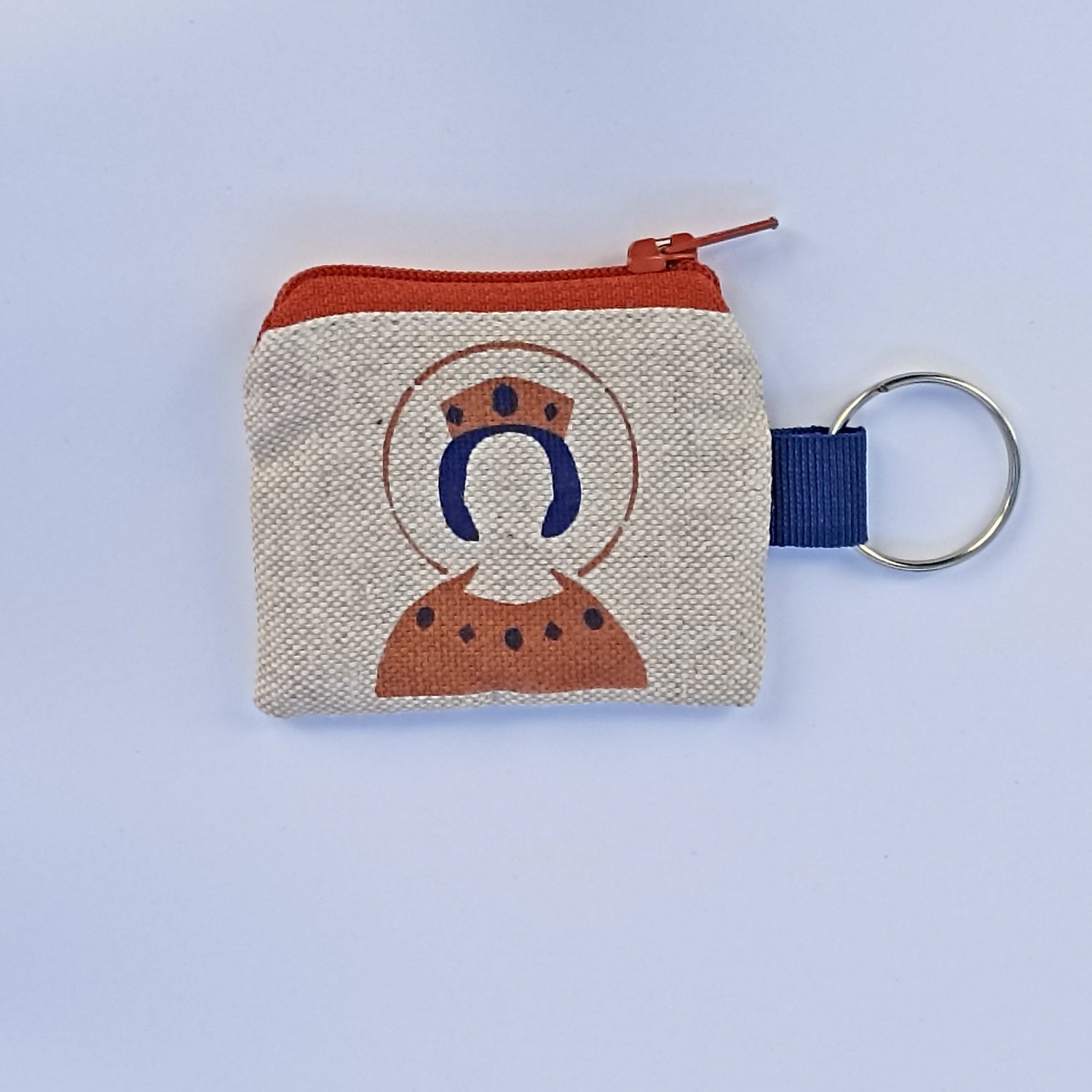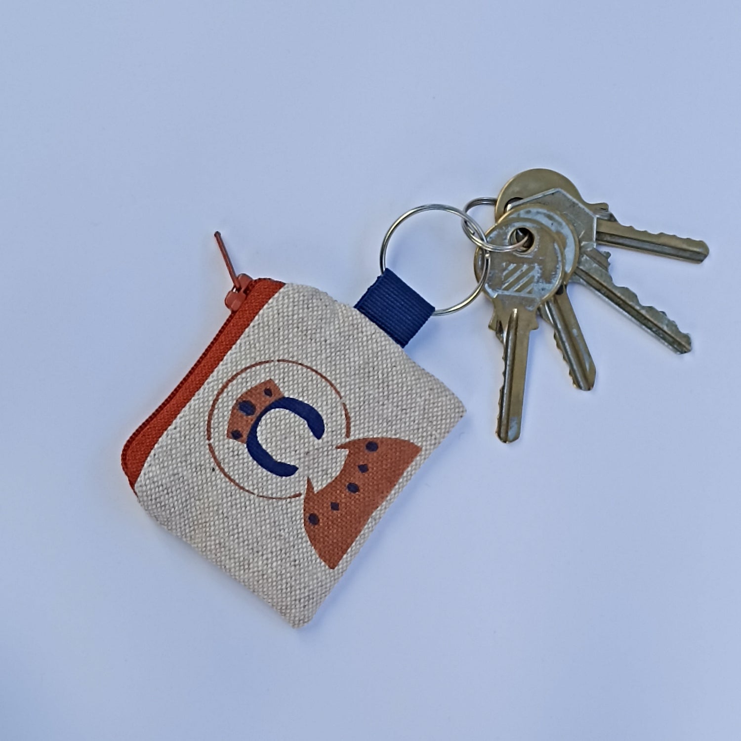 Portaspicci/portachiavi in cotone naturale stampato a mano con tecnica stencil