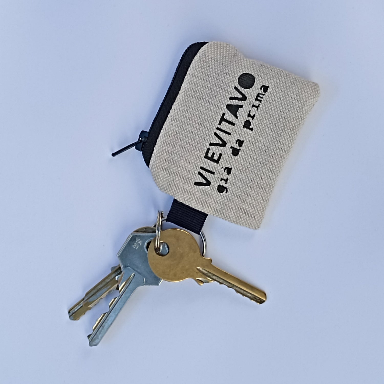 Portaspicci/portachiavi in cotone naturale stampato a mano con tecnica stencil