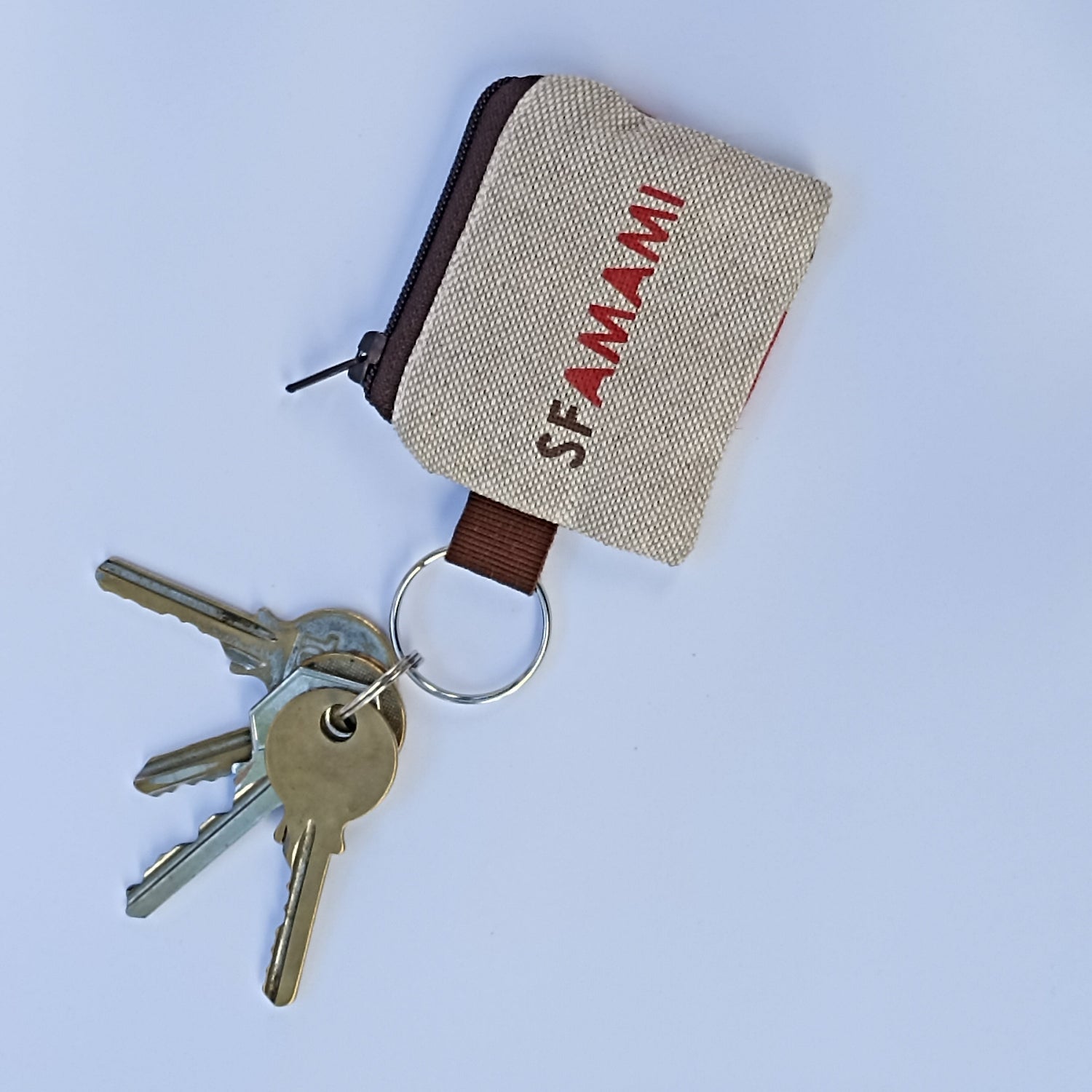 Portaspicci/portachiavi in cotone naturale stampato a mano con tecnica stencil