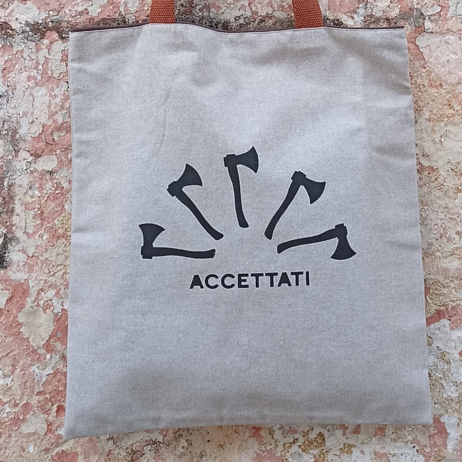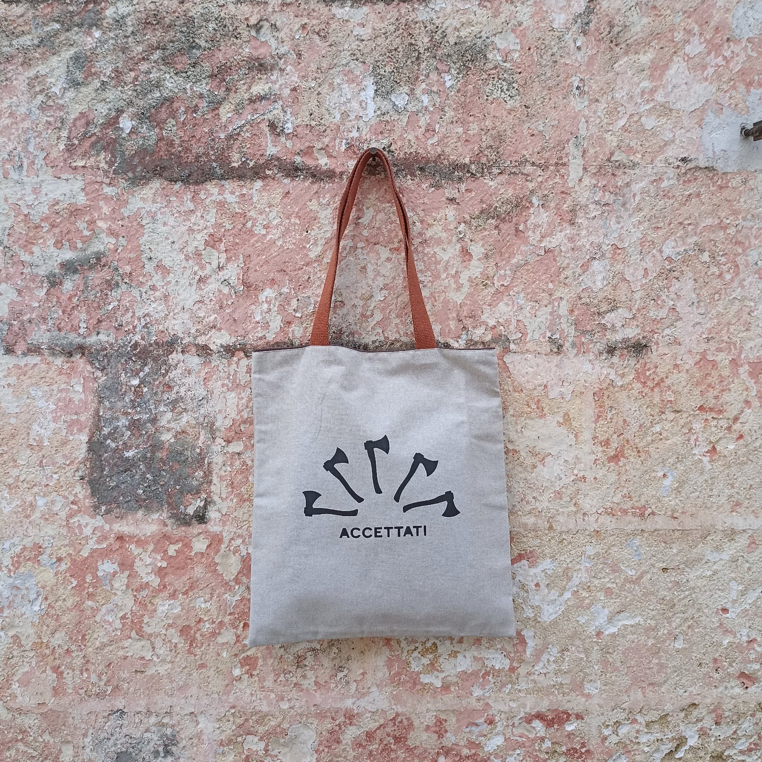 La shopper ACCETTATI è stampata a mano con tecnica stencil